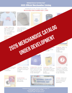 When cancer survivors attend your event, give them something to remember it by with official NCSD merchandise. From practical items like keychains and writing pens, to commemorative buttons, our Merchandise Catalog has a variety of items that cancer survivors will love.