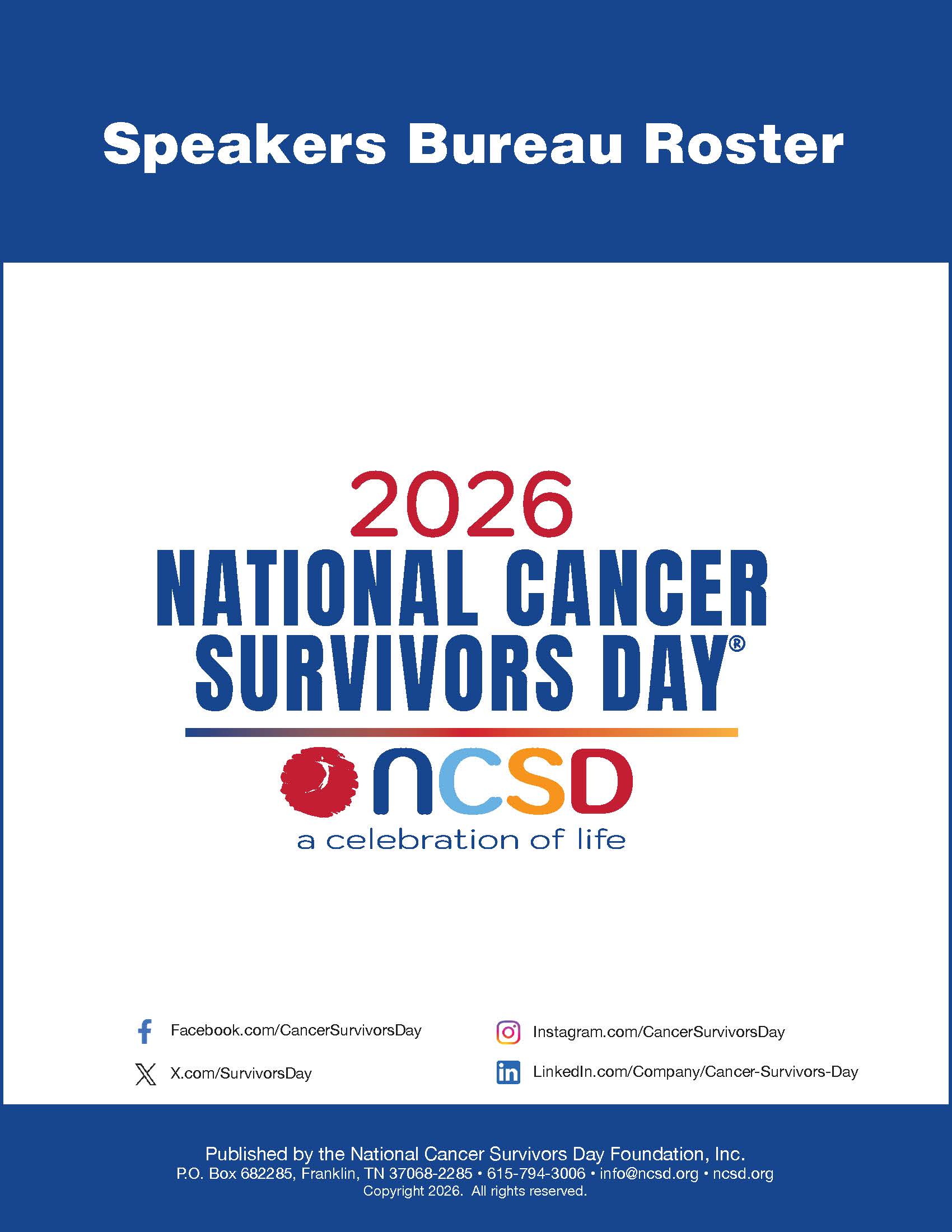 A great speaker may be just what you need to add some oomph to your National Cancer Survivors Day® celebration. Luckily for you, the NCSD Speakers Bureau Roster includes contact information for 250+ keynote and motivational speakers, celebrities, and medical professionals who are available for in-person and virtual NCSD events.